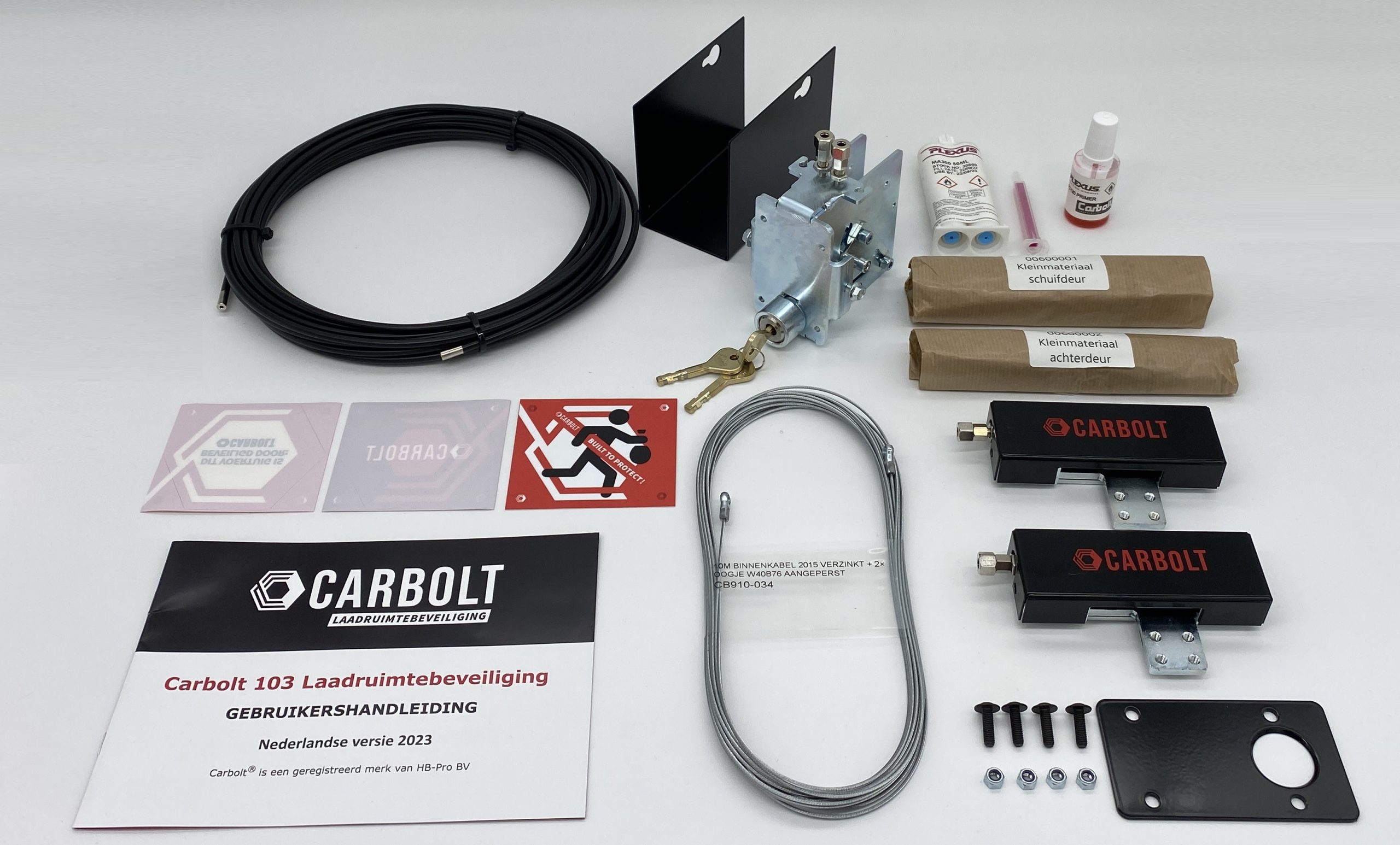 Alle Türen, die den Zugang zum Laderaum ermöglichen, werden über eine zentrale Steuerung in der Fahrerkabine verriegelt. Mit dem Carbolt 103 ist Ihr gesamter Laderaum optimal gesichert. Die Sicherung wird komplett im Inneren des Fahrzeugs angebracht. Je nach Fahrzeughöhe wird ein zweites Verriegelungssystem an der Hecktür montiert.